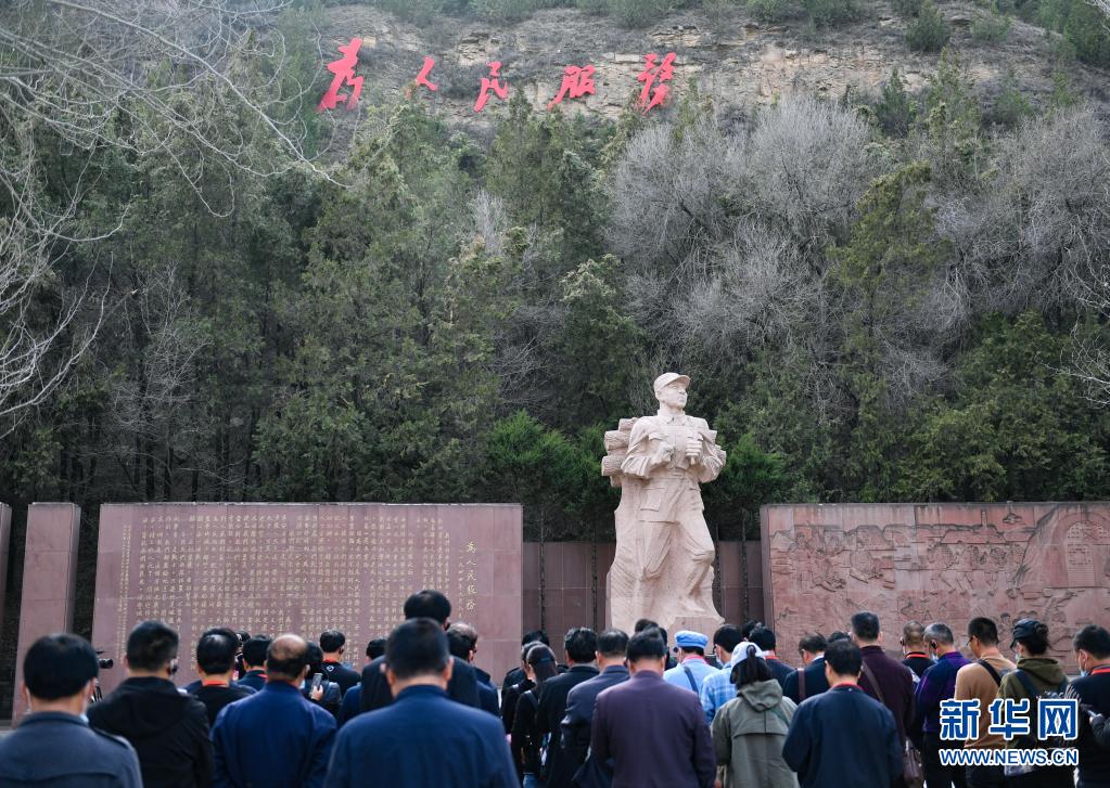 2021年3月29日,參觀者在延安市張思德廣場進行現(xiàn)場教學(xué)活動。新華社記者 張博文 攝
