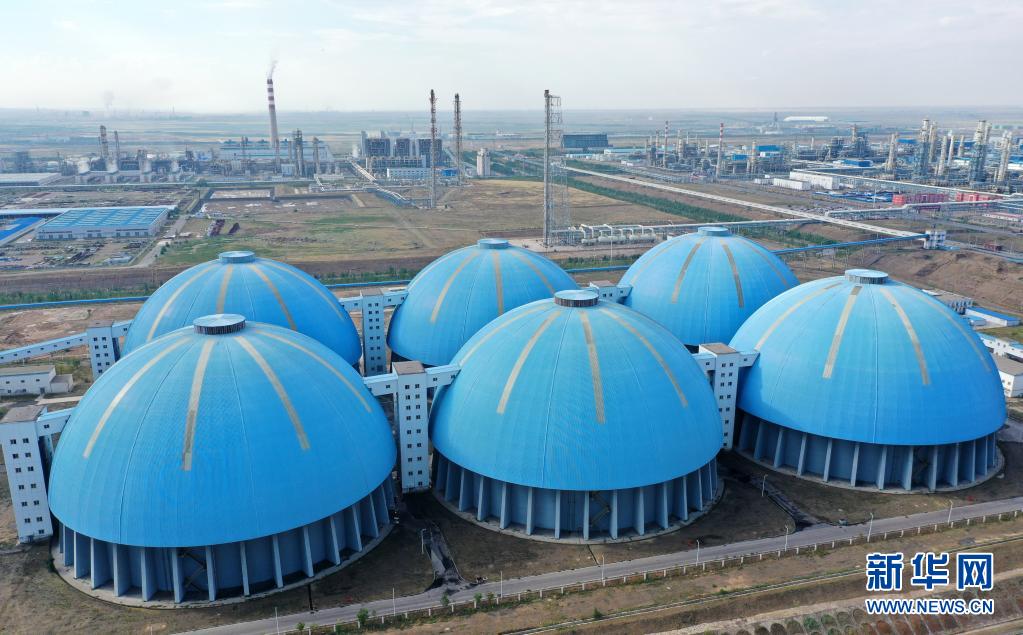 國家能源集團(tuán)寧夏煤業(yè)有限公司400萬噸煤制油項目備煤倉(無人機(jī)照片,7月16日攝)。新華社記者 王鵬 攝