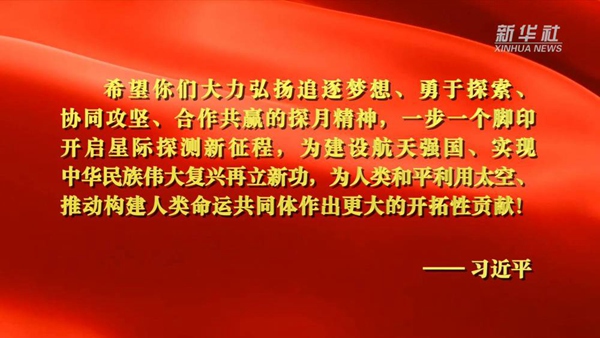 ?? 習近平總書記曾用“追逐夢想、勇于探索、協(xié)同攻堅、合作共贏”這16個字高度概括總結(jié)了“探月精神”,勉勵航天工作者們一步一個腳印開啟星際探測新征程,為建設(shè)航天強國、實現(xiàn)中華民族偉大復興再立新功。