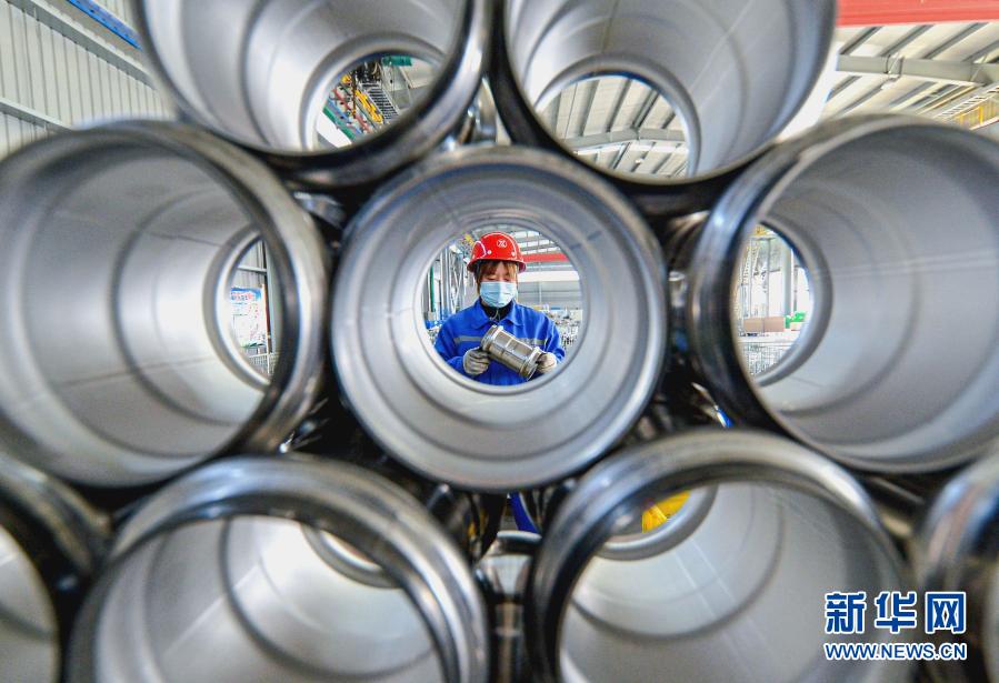 12月18日,工人在河北省邯鄲市冀南新區(qū)的新興特種管材有限公司生產(chǎn)車間內工作。新華社記者 王曉 攝