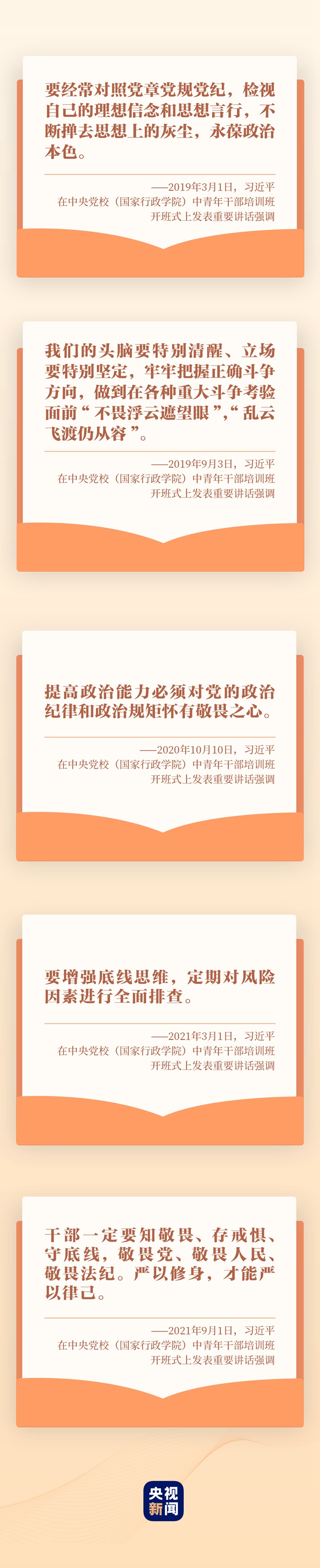 年輕干部要經(jīng)常對照黨章黨規(guī)黨紀(jì),提高思想覺悟、精神境界,擰緊世界觀、人生觀、價(jià)值觀的總開關(guān)。