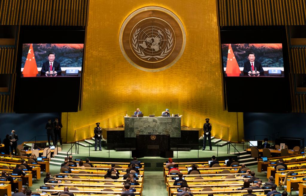 2021年9月21日,習(xí)近平在北京以視頻方式出席第七十六屆聯(lián)合國大會一般性辯論并發(fā)表重要講話。新華社記者王迎攝