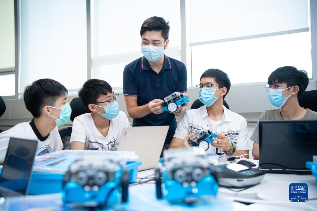 2020年7月14日,創(chuàng)業(yè)者吳以航在澳門(mén)青年創(chuàng)業(yè)孵化中心為學(xué)生上培訓(xùn)課?!?0后”吳以航是澳門(mén)青年創(chuàng)業(yè)孵化中心會(huì)員,2019年,他進(jìn)駐廣州市天河區(qū)港澳青年之家,成立藍(lán)點(diǎn)教育技術(shù)(廣州)有限公司。新華社記者 張金加 攝