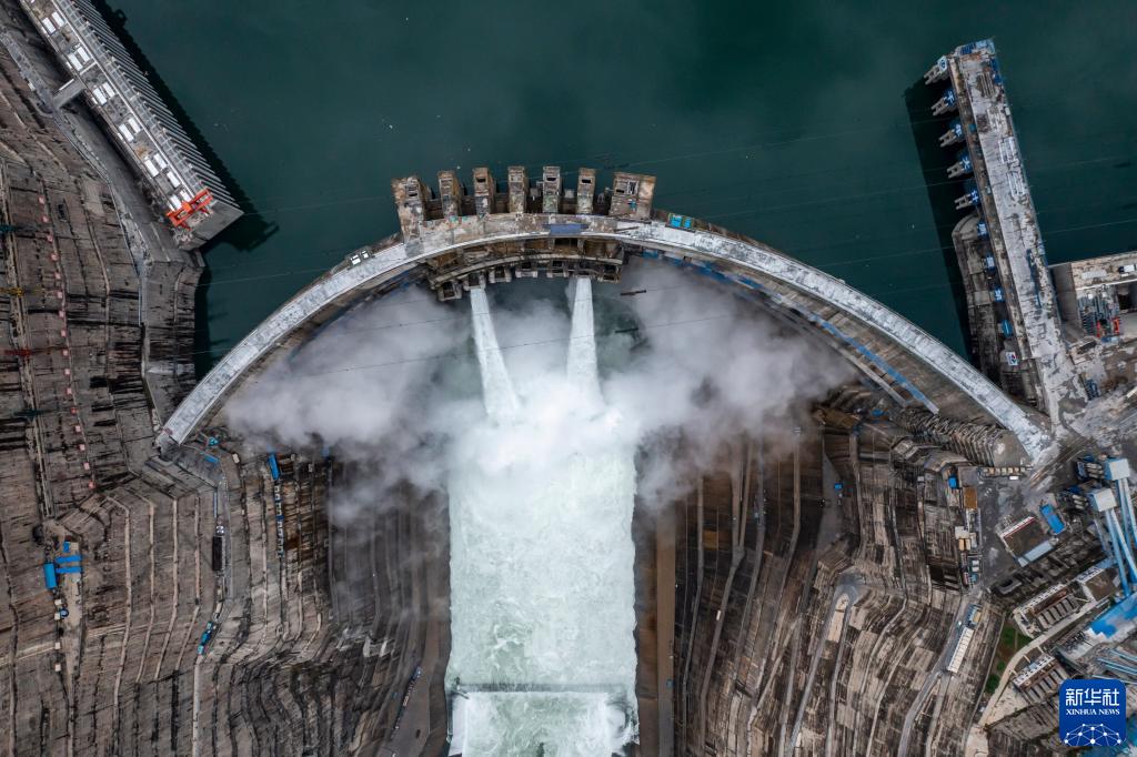 俯瞰白鶴灘水電站(無人機(jī)照片,6月28日攝)。金沙江白鶴灘水電站首批機(jī)組于6月28日安全準(zhǔn)點投產(chǎn)發(fā)電。新華社記者 江文耀 攝