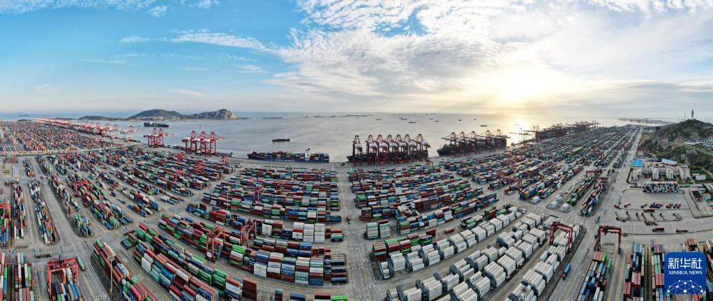 俯瞰上海洋山港碼頭(4月6日攝,無人機(jī)照片)。新華社記者 方喆 攝