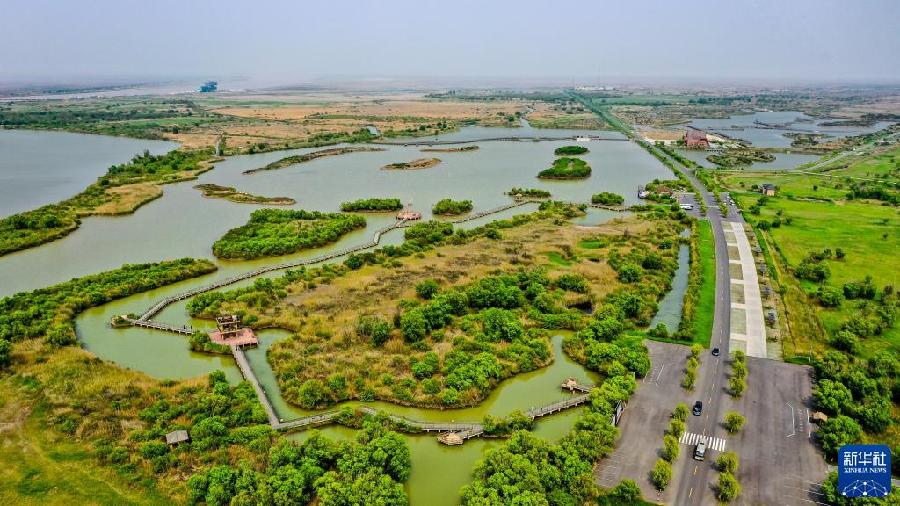 這是5月13日拍攝的山東黃河三角洲國家級自然保護區(qū)景色(無人機照片)。新華社記者 郭緒雷 攝