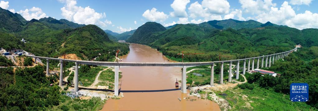 這是2020年7月24日在老撾拍攝的中老鐵路班納漢湄公河特大橋(無人機(jī)照片)。新華社發(fā)(潘龍柱 攝)