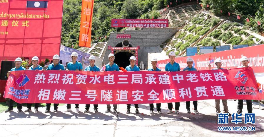 這是9月29日在老撾北部瑯勃拉邦省拍攝的相嫩三號隧道貫通儀式現(xiàn)場。新華社發(fā)(凱喬攝)