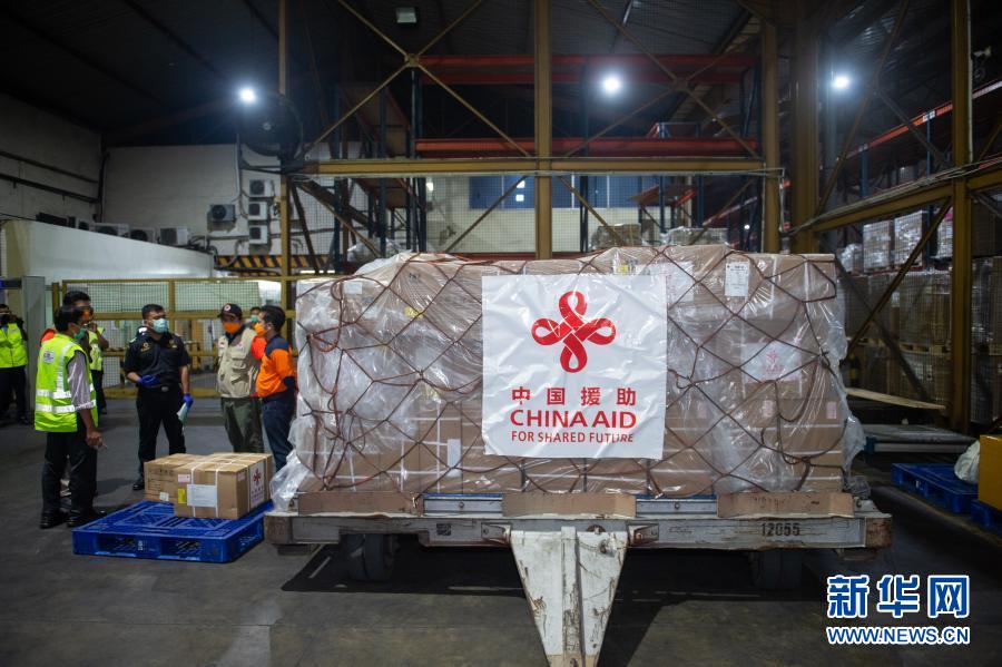 3 月 26 日,中國援助印度尼西亞的首批抗疫物資停放在雅加達(dá)蘇加諾哈達(dá)機場倉庫。新華社記者 杜宇 攝