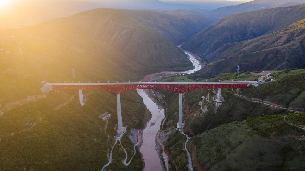 2021年9月27日拍攝的中老鐵路元江雙線特大橋。