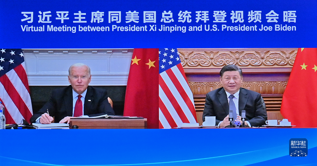 這是2021年11月16日上午,國家主席習(xí)近平在北京同美國總統(tǒng)拜登舉行視頻會(huì)晤。新華社記者 岳月偉 攝