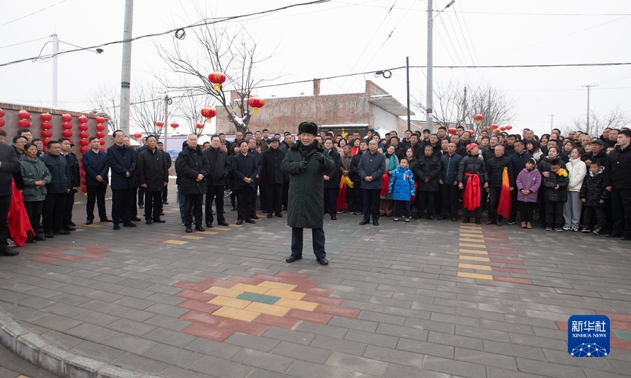 1月26日至27日,中共中央總書記、國家主席、中央軍委主席習(xí)近平來到山西,看望慰問基層干部群眾。這是26日下午,習(xí)近平在臨汾市汾西縣僧念鎮(zhèn)段村文化廣場(chǎng),給鄉(xiāng)親們拜年,向全國各族人民、向港澳臺(tái)同胞和海外僑胞致以美好的新春祝福。新華社記者 謝環(huán)馳 攝