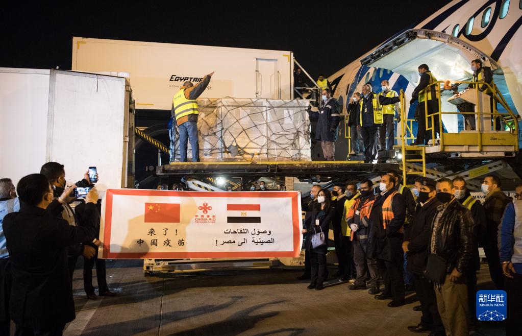 2021年2月23日,中國(guó)援助埃及的首批新冠疫苗抵達(dá)開羅國(guó)際機(jī)場(chǎng)。新華社記者 鄔惠我 攝