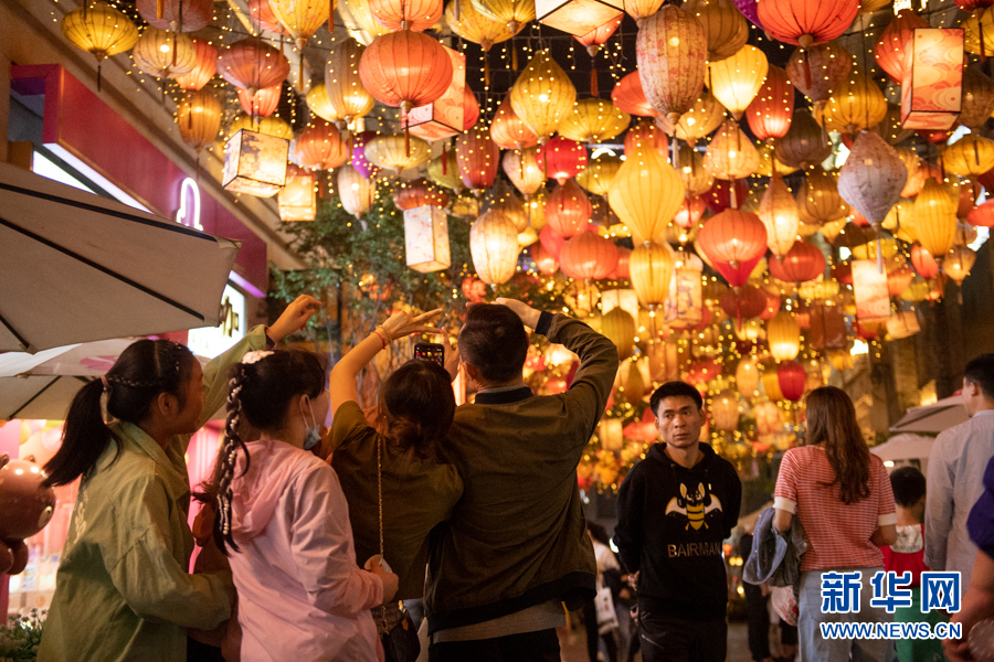 錯(cuò)落有致的吊腳小樓,中國(guó)風(fēng)滿(mǎn)滿(mǎn)的虎年燈飾,虎年春節(jié)假期,重慶“十八梯”傳統(tǒng)風(fēng)貌區(qū)內(nèi)游人如織,市民與游客紛紛來(lái)此感受屬于“老重慶的年味”。