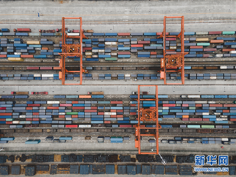 無(wú)人機(jī)視角下的中歐班列(成渝)發(fā)車(chē)地——重慶團(tuán)結(jié)村站。(2020年8月5日攝)新華網(wǎng) 耿駿宇 攝