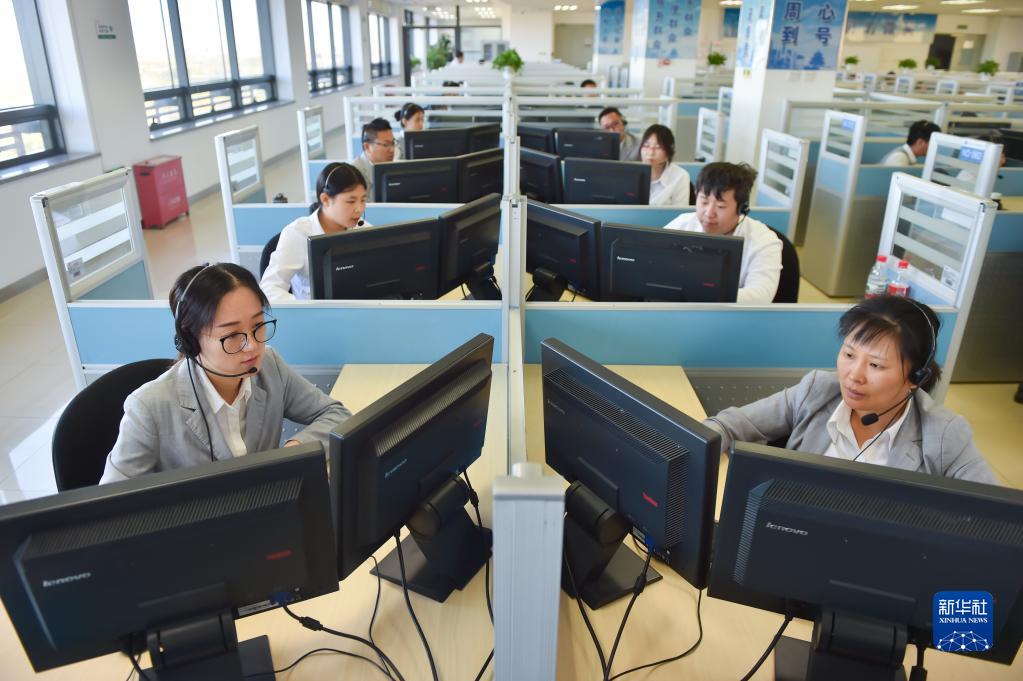 在位于北京亦莊的12345市民熱線話務(wù)大廳,工作人員接聽熱線電話(2019年11月13日攝)。 新華社記者 彭子洋 攝