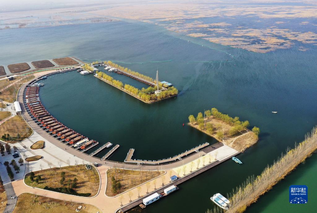 這是3月28日拍攝的雄安新區(qū)白洋淀旅游碼頭(無人機照片)。新華社記者 朱旭東 攝
