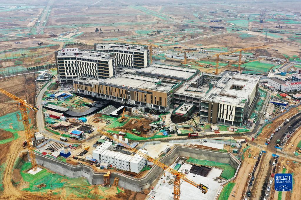 這是3月29日拍攝的雄安新區(qū)首都醫(yī)科大學宣武醫(yī)院雄安院區(qū)項目建設施工現(xiàn)場(無人機照片)。新華社記者 朱旭東 攝