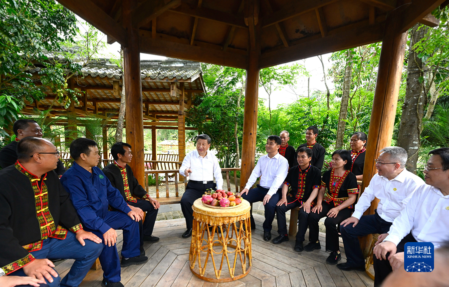 4月10日至13日,中共中央總書記、國家主席、中央軍委主席習近平在海南考察。這是11日下午,習近平在五指山市水滿鄉(xiāng)毛納村同村民們親切交流。新華社記者 謝環(huán)馳 攝