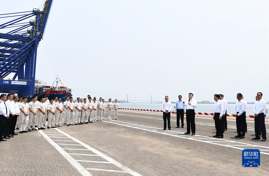 隨后,習近平來到洋浦國際集裝箱碼頭小鏟灘港區(qū),了解港口建設發(fā)展情況,同現(xiàn)場作業(yè)人員、掛職干部代表等親切交流。習近平強調(diào),振興港口、發(fā)展運輸業(yè),要把握好定位,增強適配性,堅持綠色發(fā)展、生態(tài)優(yōu)先,推動港口發(fā)展同洋浦經(jīng)濟開發(fā)區(qū)、自由貿(mào)易港建設相得益彰、互促共進,更好服務建設西部陸海新通道、共建“一帶一路”。他指出,黨中央選派干部來自由貿(mào)易港掛職,既體現(xiàn)了黨中央對自由貿(mào)易港建設的關心和支持,也是對干部的培養(yǎng)鍛煉,要發(fā)揮掛職干部的積極作用,讓他們在基層一線增長才干。