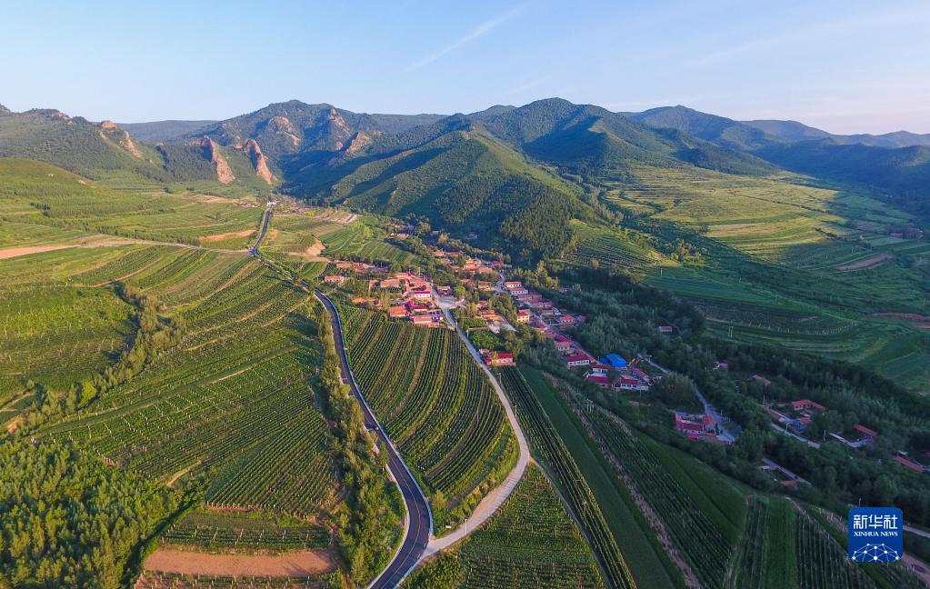 這是2021年8月30日拍攝的內(nèi)蒙古赤峰市喀喇沁旗馬鞍山村風(fēng)光(無人機(jī)照片)。新華社記者 貝赫 攝