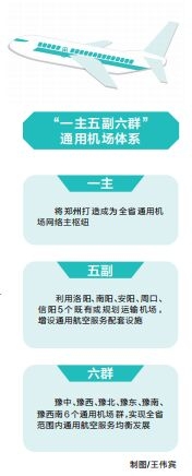 這55個機場將如何布局?《規(guī)劃》明確,綜合考慮全省各地發(fā)展實際及空域條件,將構(gòu)建“一主五副六群”通用機場體系?!耙恢鳌保瑢⑧嵵荽蛟斐蔀槿⊥ㄓ脵C場網(wǎng)絡主樞紐;“五副”,利用洛陽、南陽、安陽、周口、信陽5個既有或規(guī)劃運輸機場,增設通用航空服務配套設施;“六群”即豫中、豫西、豫北、豫東、豫南、豫西南6個通用機場群,實現(xiàn)全省范圍內(nèi)通用航空服務均衡發(fā)展。(記者 逯彥萃)