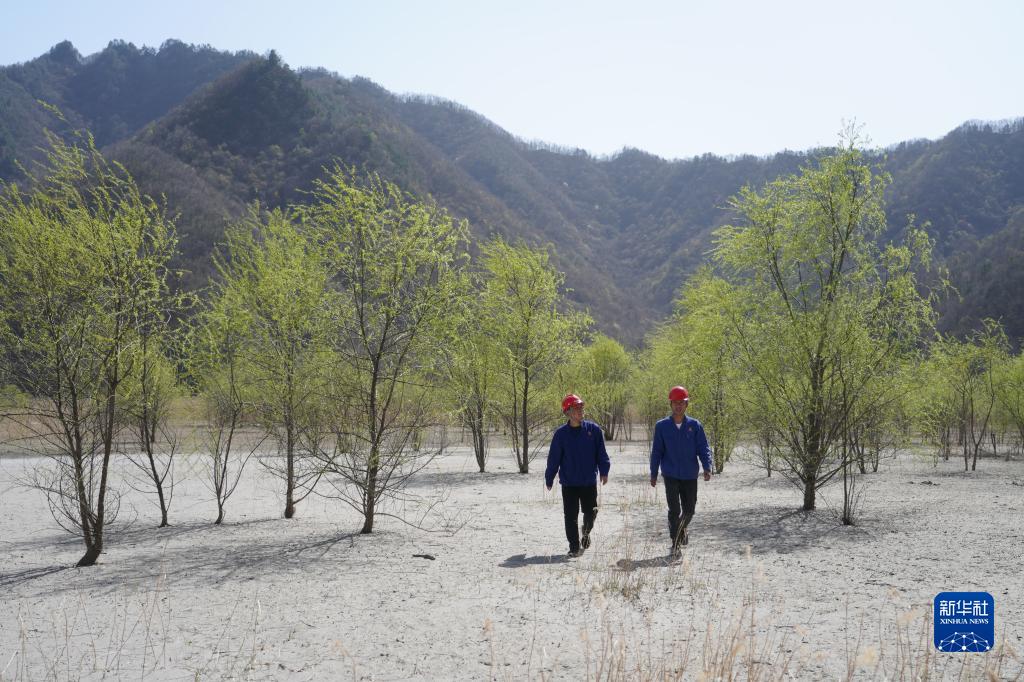 4月7日,金堆城鉬業(yè)集團(tuán)有限公司工作人員在經(jīng)過(guò)生態(tài)治理后的木子溝尾礦庫(kù)內(nèi)巡查。 新華社記者 邵瑞 攝