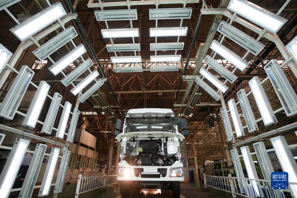 5月24日,在陜西汽車控股集團(tuán)有限公司總裝車間,一輛裝配完畢的陜汽重型卡車等待驗(yàn)收。 新華社記者 李一博 攝