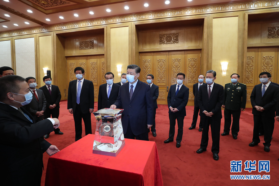 習近平在會見探月工程嫦娥五號任務參研參試人員代表并參觀月球樣品和探月工程成果展覽時強調(diào)