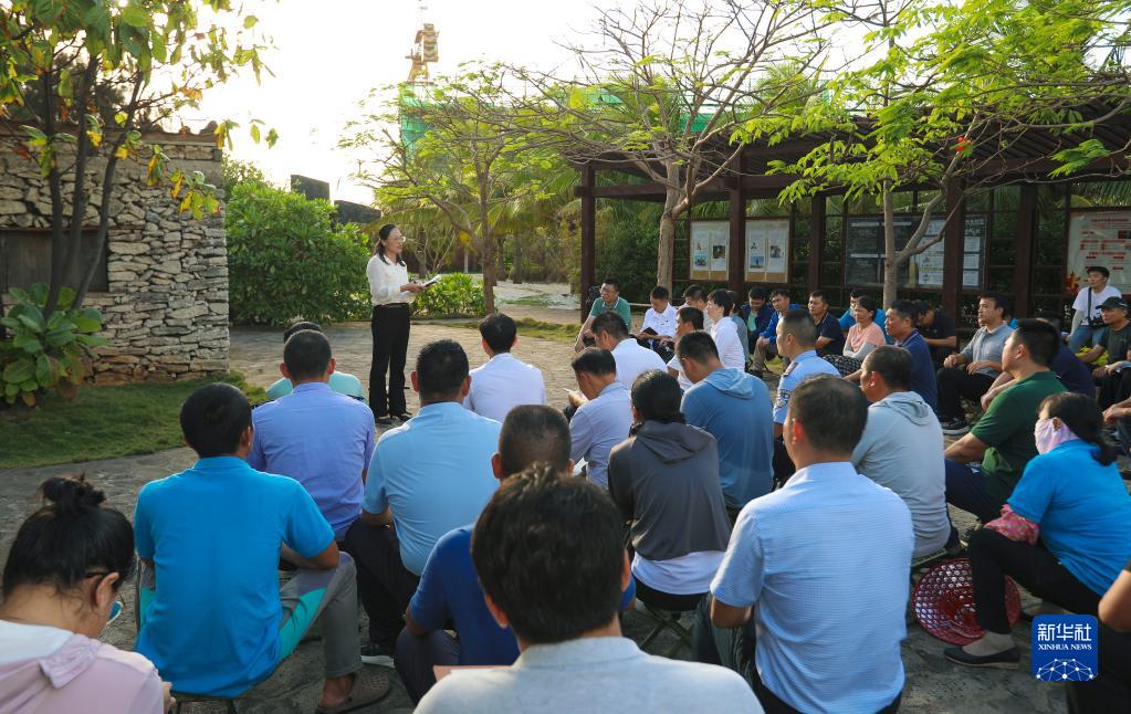 11月17日,黨的二十大代表、海南陵水黎族自治縣文羅鎮(zhèn)副鎮(zhèn)長、五星村黨總支書記黃麗萍在三沙市趙述島宣講黨的二十大精神。新華社發(fā)(吳亞鐵攝)
