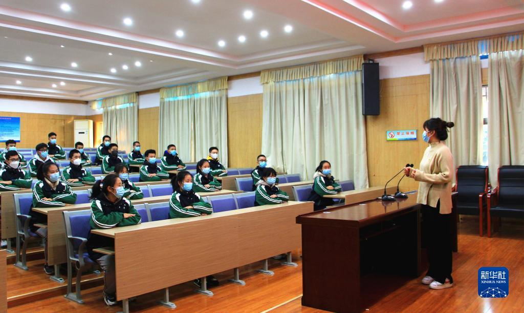 12月5日,在山東省棗莊市第八中學(xué),棗莊市薛城區(qū)委宣講團舉辦“青草學(xué)堂”宣講活動,把黨的二十大精神送進學(xué)校。新華社發(fā)