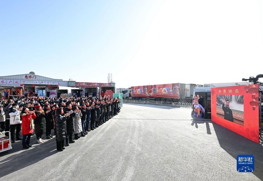新發(fā)地農(nóng)產(chǎn)品批發(fā)市場是北京市重要的“菜籃子”、“果盤子”。習(xí)近平通過視頻親切看望慰問批發(fā)市場留守的商戶和采購年貨的群眾。在蔬菜一區(qū)露天交易區(qū),商戶和現(xiàn)場的群眾熱烈鼓掌,向總書記問好。聽完市場負(fù)責(zé)人介紹保供和物流情況后,習(xí)近平仔細詢問這幾天市場運行情況怎么樣、今年商戶的買賣怎么樣、今年批發(fā)價格怎么樣。得知菜價保持平穩(wěn)、種類充足齊全,習(xí)近平十分欣慰。他指出,民以食為天?!安嘶@子”、“米袋子”、“果盤子”,事關(guān)千家萬戶,是最基本的民生。過年過節(jié),安全不能忘。批發(fā)市場既要在拓展貨源、豐富品種、保證質(zhì)量上下功夫,也要在加強食品檢測和市場管理上下功夫,讓首都市民吃得放心、吃得舒心。農(nóng)貿(mào)市場人流物流密集,是疫情防控的重點場所,要適度調(diào)控人流物流,加強疫情監(jiān)測檢測,搞好市場環(huán)境衛(wèi)生,盡最大努力降低疫情風(fēng)險。習(xí)近平強調(diào),各級黨委和政府要落實好“米袋子”省長負(fù)責(zé)制、“菜籃子”市長負(fù)責(zé)制,加強糧油肉蛋奶果蔬菌等重要民生商品的產(chǎn)銷保供,暢通物流配送,豐富節(jié)日市場供應(yīng),確保數(shù)量充足、品種豐富、質(zhì)量放心、價格穩(wěn)定,讓人民群眾開開心心、安安心心過大年。