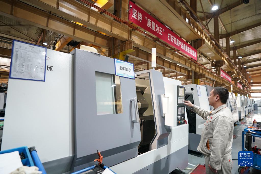 通用技術集團沈陽機床的工人在車間工作(2月14日攝)。新華社記者 潘昱龍 攝