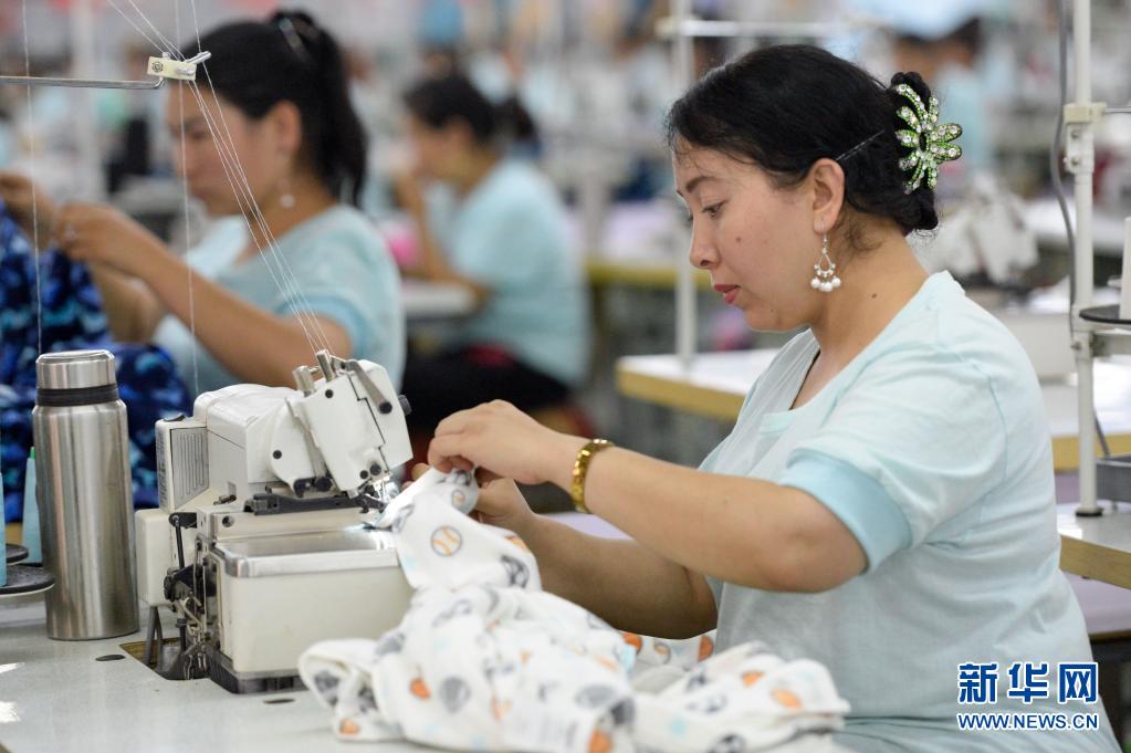 在新疆和田地區(qū)和田縣布扎克鄉(xiāng)思源扶貧產業(yè)園,工人在制作服裝(2019年8月31日攝)。新華社記者 丁磊 攝