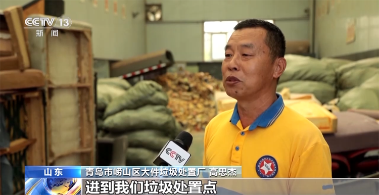 青島市嶗山區(qū)大件垃圾處置廠 高思杰:大件垃圾、沙發(fā)家具什么的,進到我們垃圾處置點,通過人工分揀,再通過設備的粉碎。粉碎完了以后,木頭我們揀出來做再利用,海綿和布再送到垃圾轉(zhuǎn)運站去,做無害化處理。
