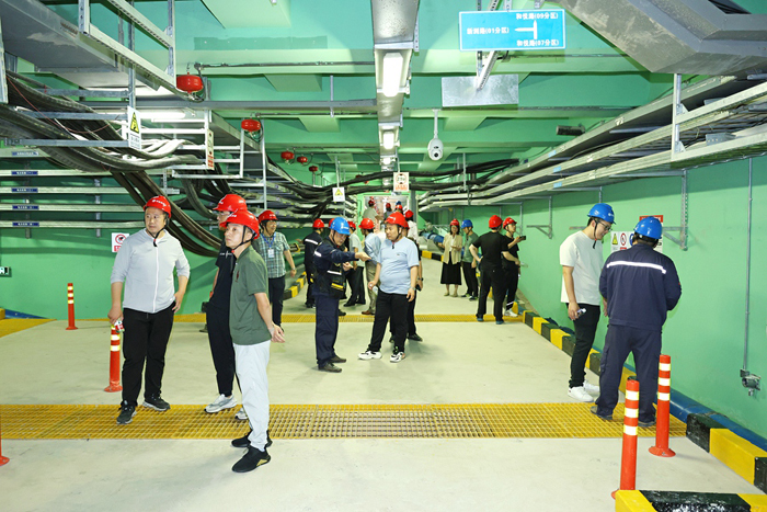 與會(huì)專家學(xué)者、行業(yè)代表等集體參觀集美新城綜合管廊。主辦方供圖