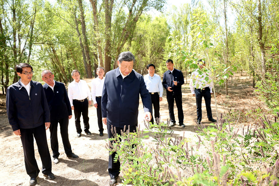 2023年6月5日至6日,中共中央總書記、國家主席、中央軍委主席習(xí)近平在內(nèi)蒙古巴彥淖爾考察,并主持召開加強(qiáng)荒漠化綜合防治和推進(jìn)“三北”等重點(diǎn)生態(tài)工程建設(shè)座談會。這是5日下午,習(xí)近平在烏梁素??疾?。新華社記者 謝環(huán)馳 攝