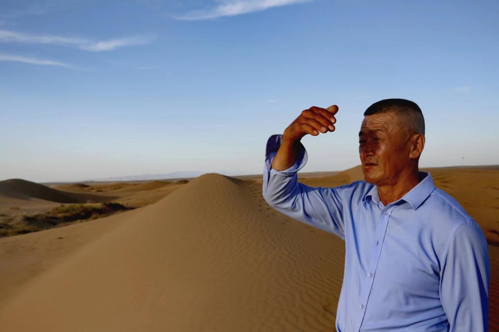 烏日根達(dá)來(lái)還是個(gè)精壯小伙時(shí),在妻子支持下,賣掉家里的山羊換回2萬(wàn)元,正式開始植樹治沙。