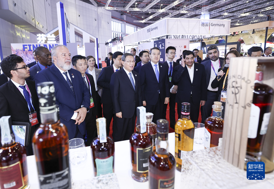 開幕式前,李強(qiáng)參觀了企業(yè)展。開幕式后,李強(qiáng)同與會外國領(lǐng)導(dǎo)人共同巡館。