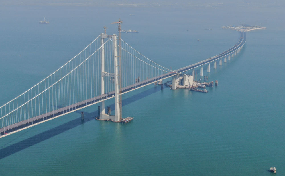 2023年11月28日,粵港澳大灣區(qū)超級工程深中通道主線正式貫通,這是深中通道伶仃洋大橋東塔及西人工島(無人機照片)。新華社記者 鄧華 攝