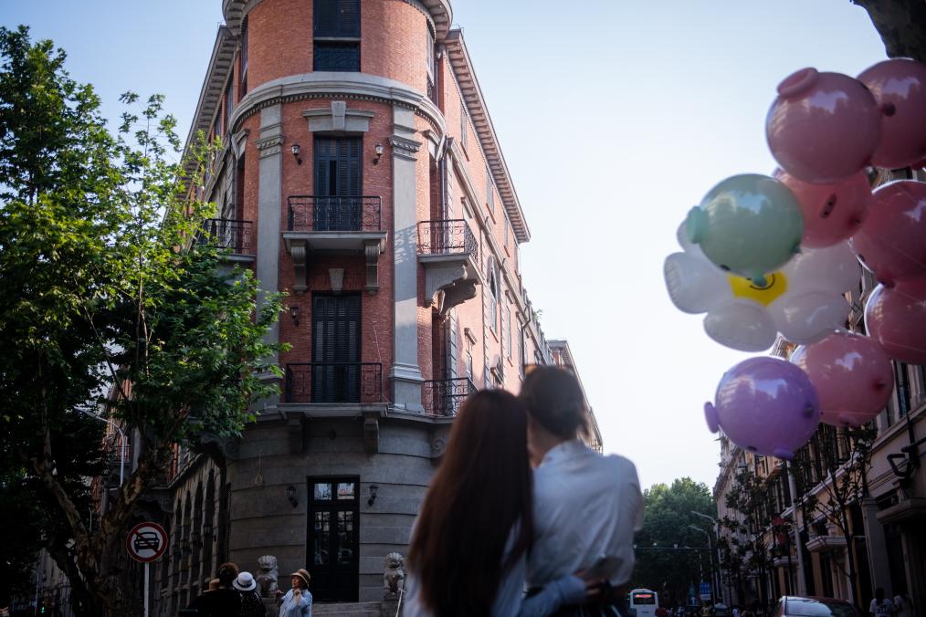 ??2023年6月6日,游客在武漢市漢口歷史風貌區(qū)巴公房子前拍照。隨著漢口歷史風貌區(qū)舊城改造城市更新項目的推進,風貌區(qū)內(nèi)一座座老建筑被修繕、改造,融入現(xiàn)代生活,煥發(fā)新的生命。新華社記者 伍志尊 攝
