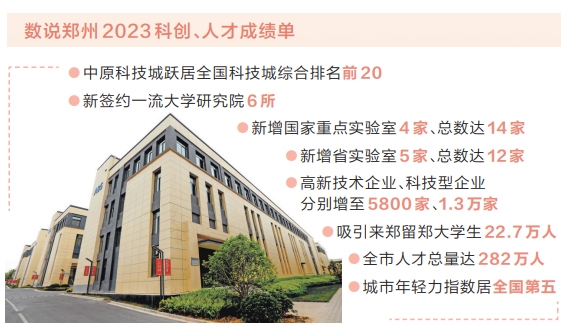 搭建平臺,用好政策,優(yōu)化服務,留住人才,“年輕鄭、文化鄭、國際鄭、科技鄭”成為鄭州的城市新標簽。2023年,中原科技城躍居全國科技城綜合排名前20;新簽約一流大學研究院6所,新增國家重點實驗室4家、總數達14家,新增省實驗室5家、總數達12家;高新技術企業(yè)、科技型企業(yè)分別增至5800家、1.3萬家;吸引來鄭留鄭大學生22.7萬人,全市人才總量達282萬人;全市常住人口平均年齡不超過35歲、城市年輕力指數居全國第五。