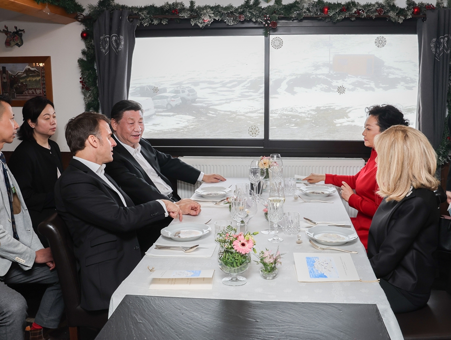 ??驛站木屋外,春雪紛飛,云海浩渺。兩國元首夫婦憑窗而坐,遠眺群山,品當(dāng)?shù)靥厣牢?,論天下風(fēng)云際會,在輕松愉快的氛圍中就一些重要問題進行了戰(zhàn)略溝通。