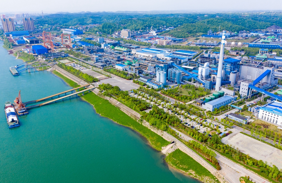 ??這是位于湖北省宜昌市的興發(fā)集團(tuán)宜昌新材料產(chǎn)業(yè)園(2022年4月19日攝,無(wú)人機(jī)照片)。新華社發(fā)