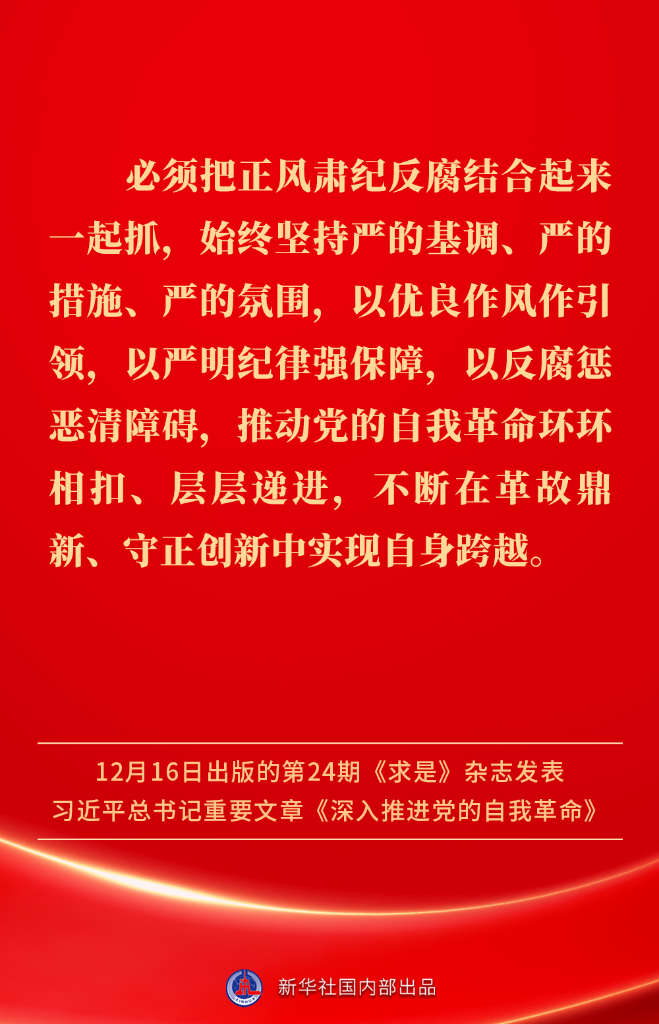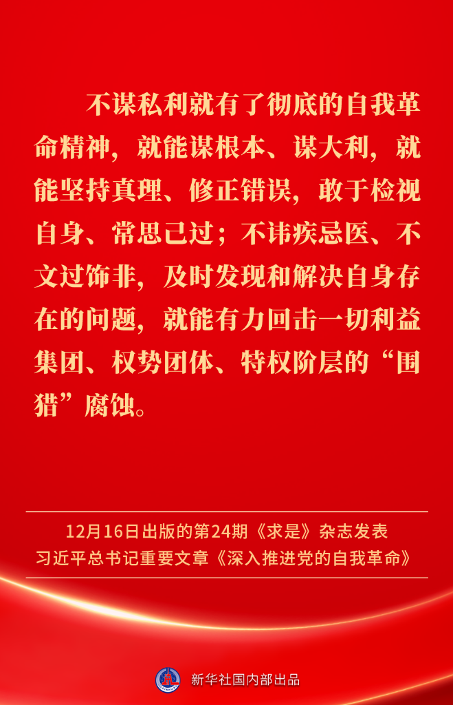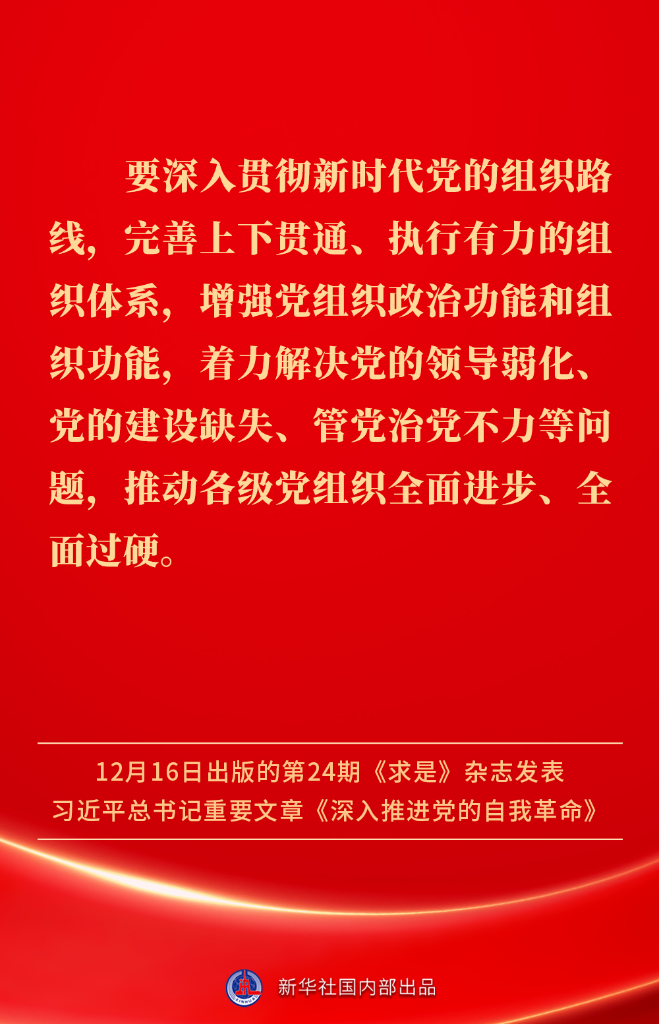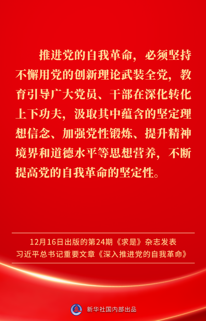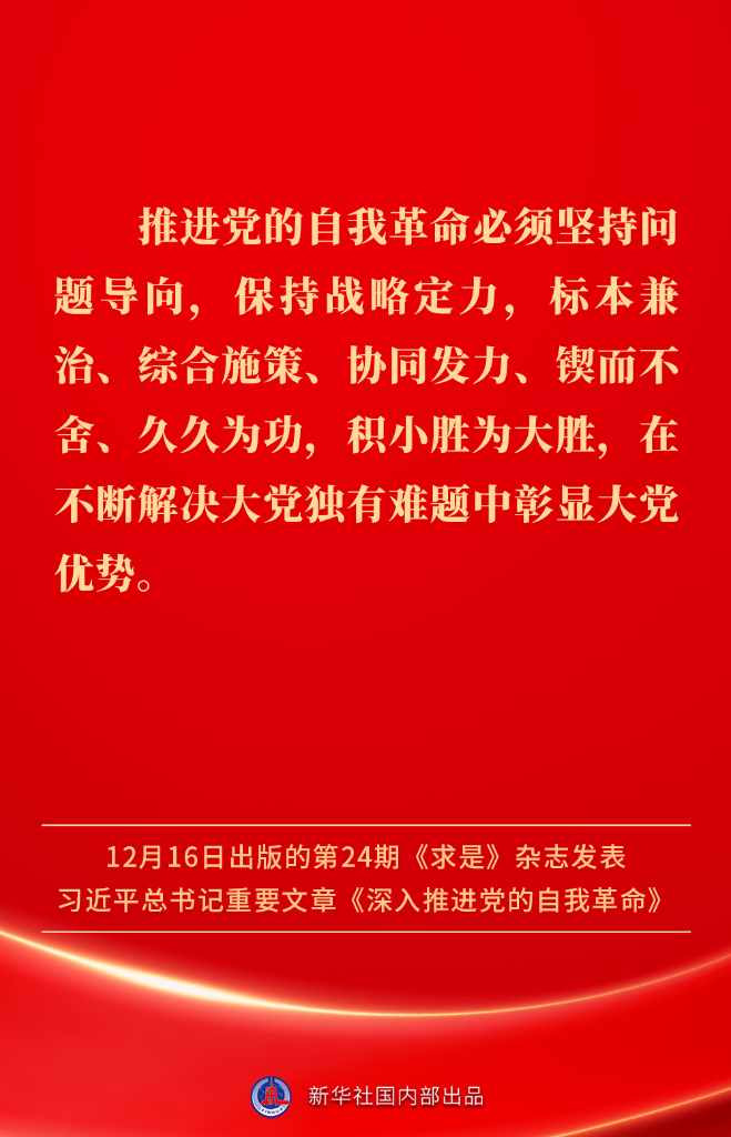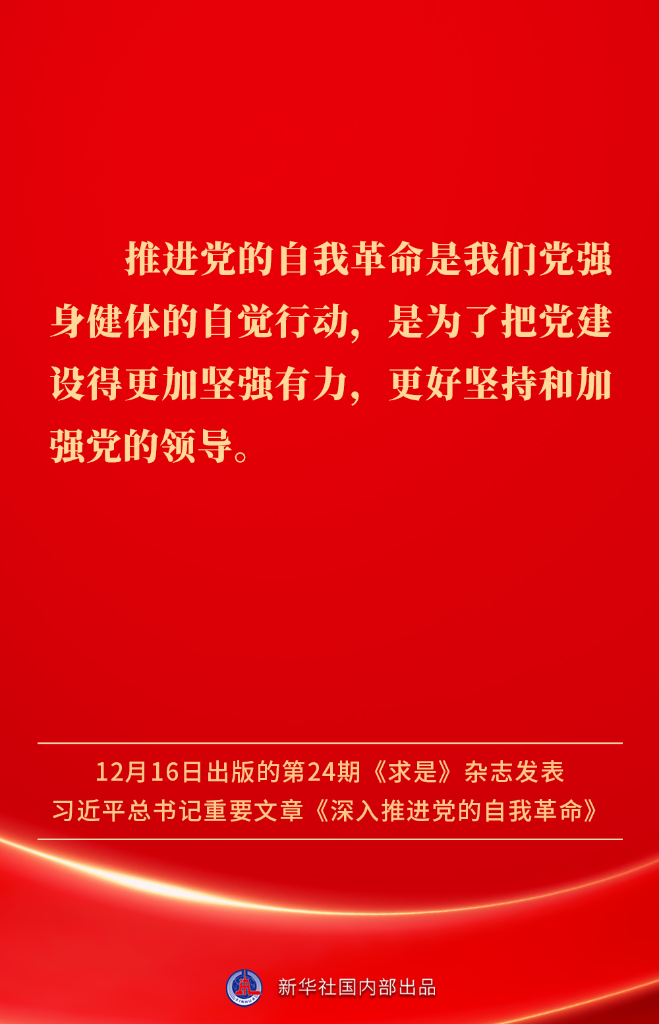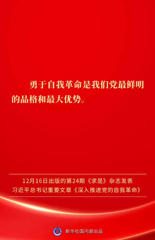 ? ?12月16日出版的第24期《求是》雜志發(fā)表習近平總書記重要文章《深入推進黨的自我革命》。我們黨為什么要自我革命、為什么能自我革命、怎樣推進自我革命?習近平總書記這樣闡述——